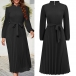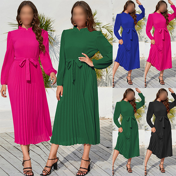 Fashion Solid Color Long Sleeve Self-tie Pleated Dress