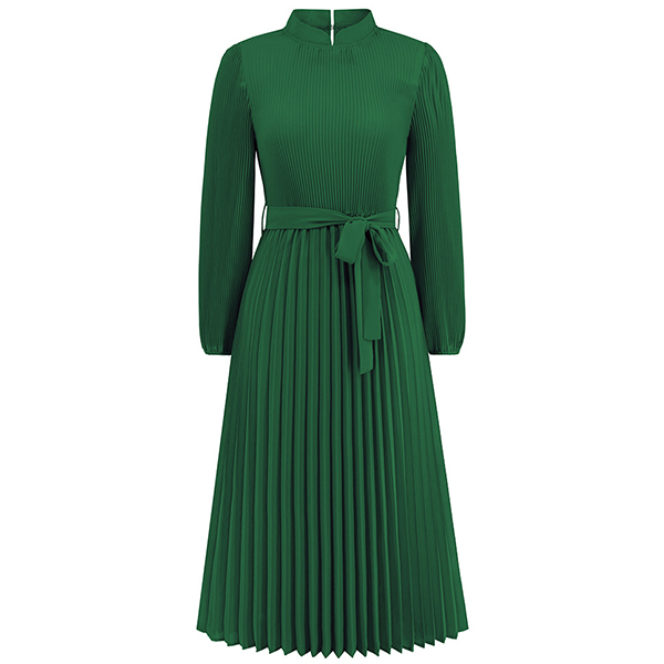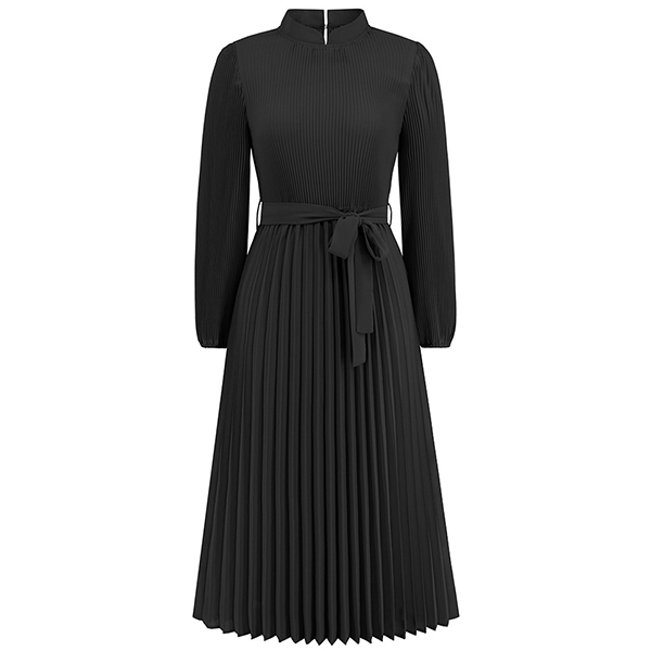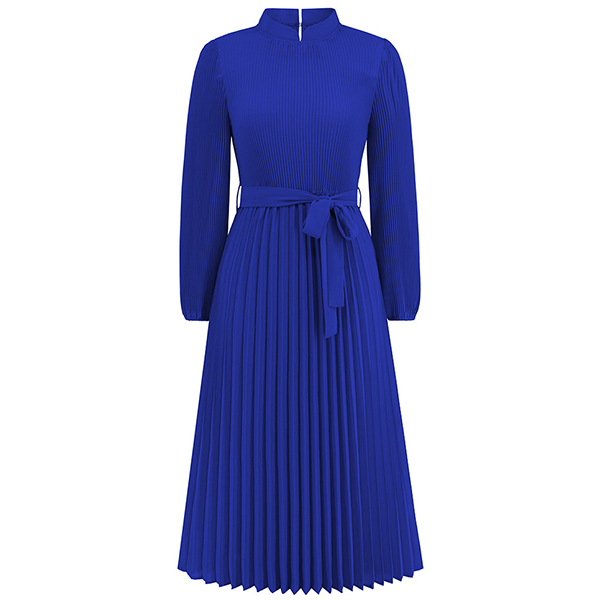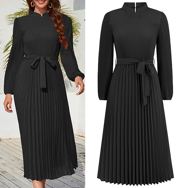 This dress is a perfect blend of style and sophistication. The self-tie waist belt allows you to cinch in the dress for a flattering and customized fit. The pleated skirt adds movement and dimension, creating a graceful and feminine silhouette. Crafted from high-quality fabric, this dress offers a comfortable and breathable feel.