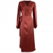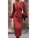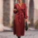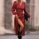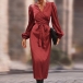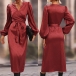 Fashion Solid Color Long Sleeve Self-tie Wrap Midi Dress