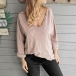 Fashion Solid Color Long Sleeve Sequin Spliced V-neck Loose T-shirt