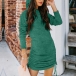 For your rushed mornings,you must have no time to think about what to wear. So might we suggest you this t-shirt dress? Boasts a solid color,the side-drawstring and hooded silhouette design break the simple and dull design style,while its soft,breathable fabric can ensure you a comfortable day. Just invite one piece to your wardrobe.