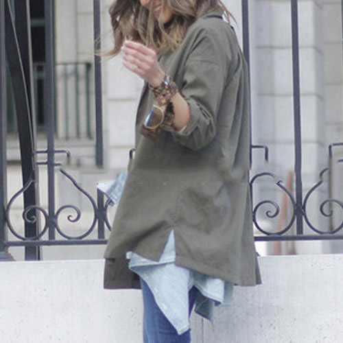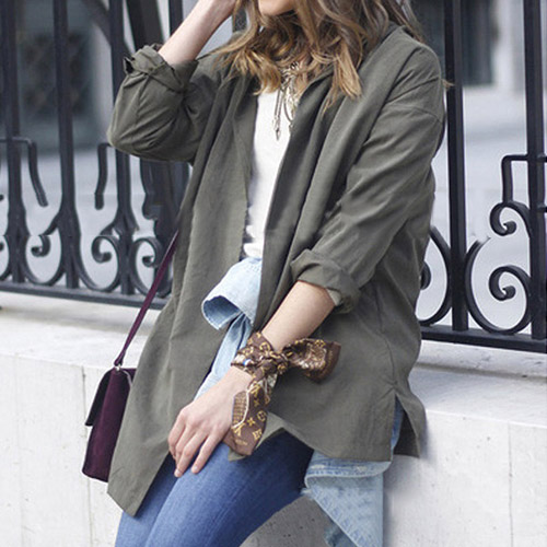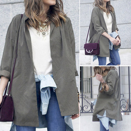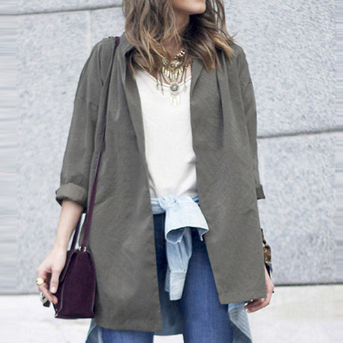 army green color, with long sleeve and lapel design, this trench coat can completely highlight