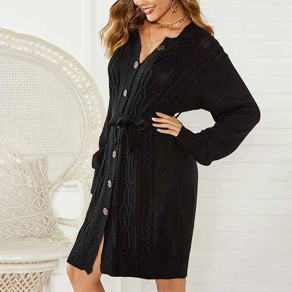 When the autumn season hits,you can update your wardrobe with this knit cardigan. Solid color style,the single-breasted design makes it look not so simple,while the waist strap design will further enhance its charm. Matching with your tight dress would be a good idea.