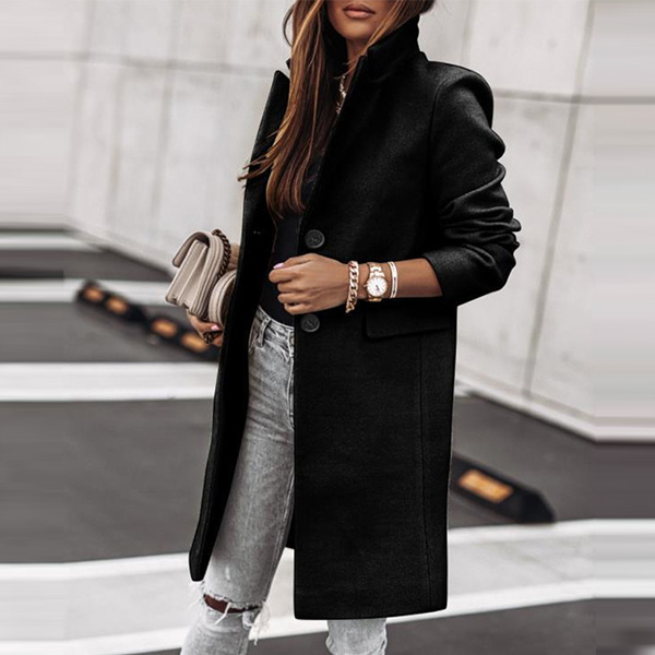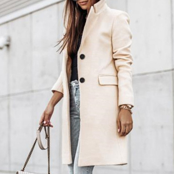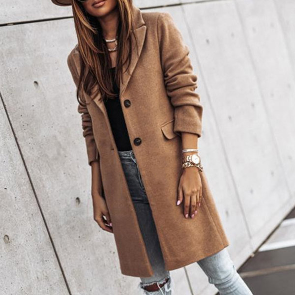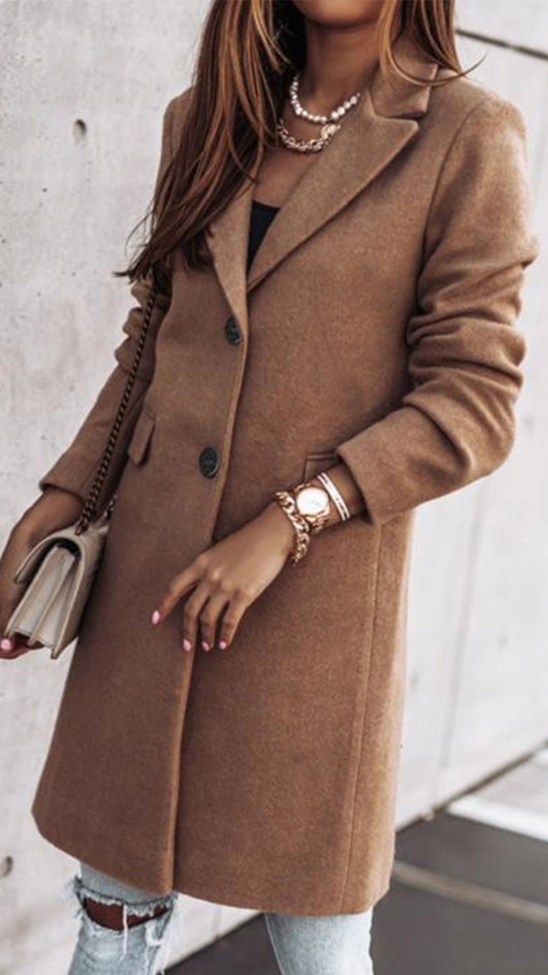 A delicate and stylish woolen coat is a wardrobe essential for every girl. So you can make your eyes focused on this piece if you still not have one. It comes with a solid color,finished with long sleeve,notched lapel,single-breasted and a clean silhouette,this woolen coat can keep you warm as well as exude your stylish and elegant side.