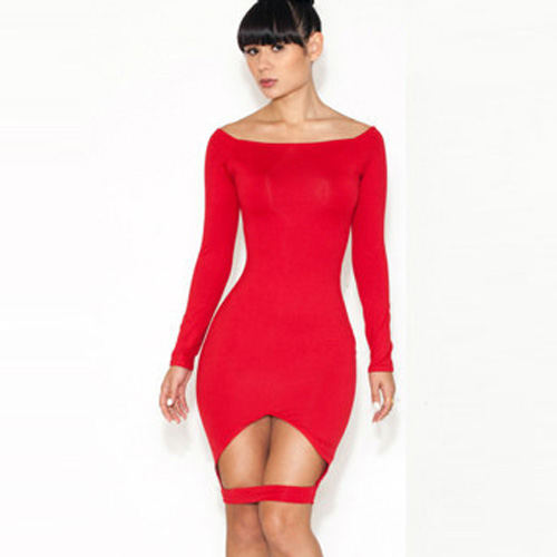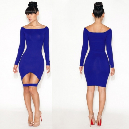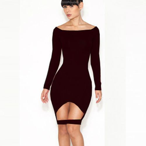 This dress features solid color style,with fashion round neck and long sleeve design. Hemline with see-through design. Slim fit and package hip design,perfect outline your seductive curve.