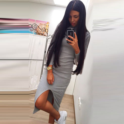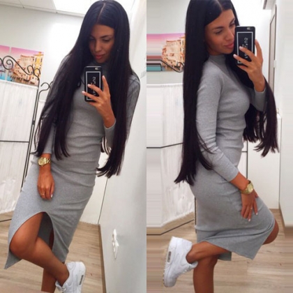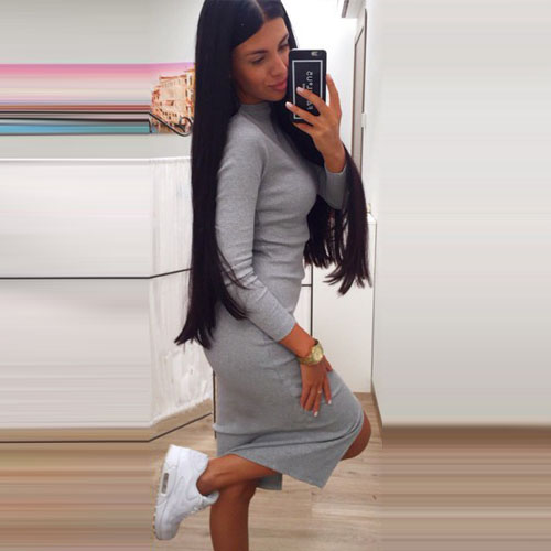 Slip into this super-soft dress. Solid color style,with long sleeve,
