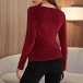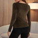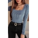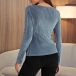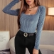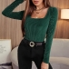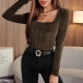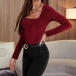 Fashion Solid Color Long Sleeve Square Collar Slim Fit T-shirt