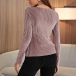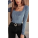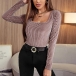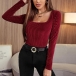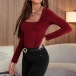 Fashion Solid Color Long Sleeve Square Collar Slim Fit T-shirt
