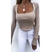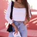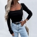 Fashion Solid Color Long Sleeve Square Neck Crop Top