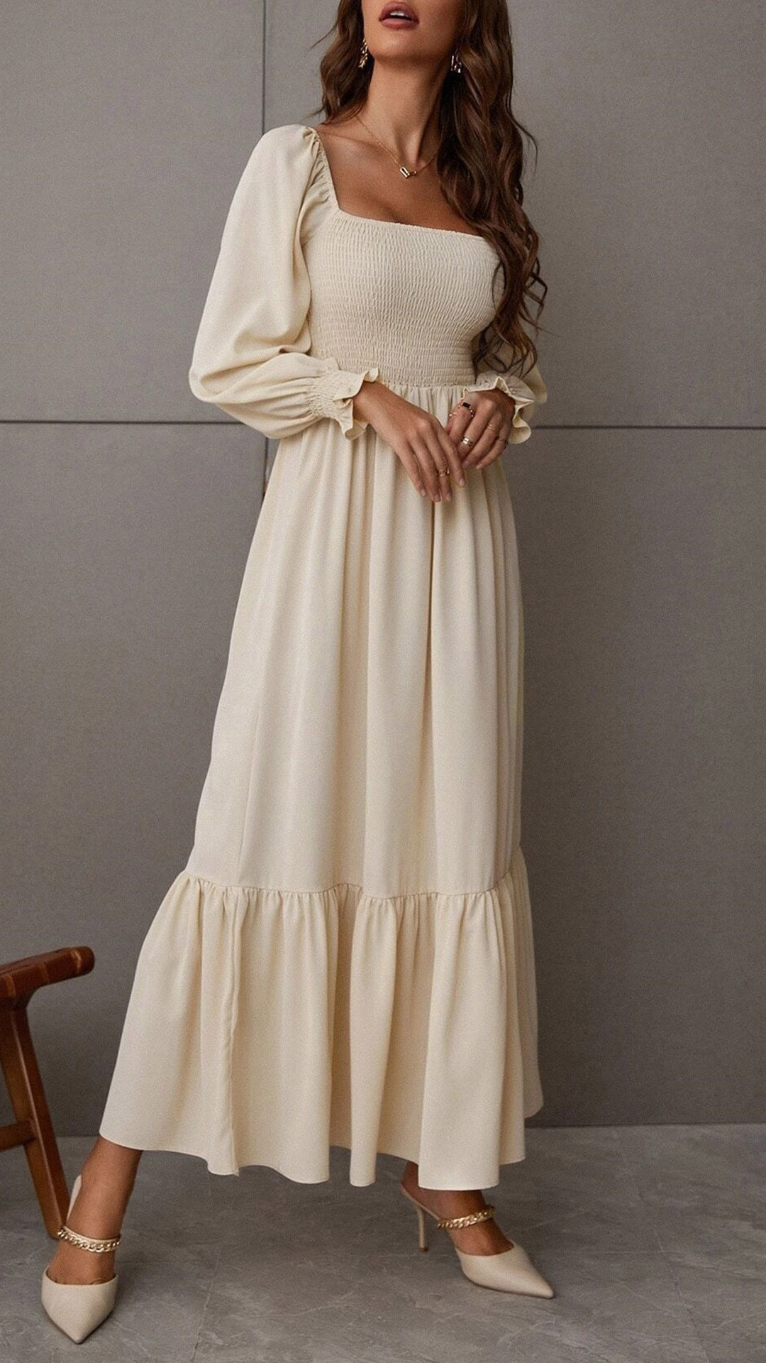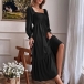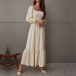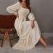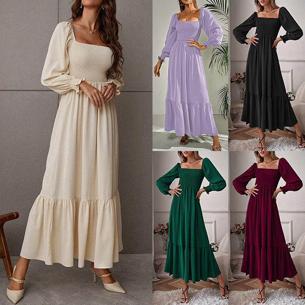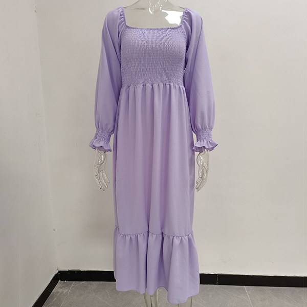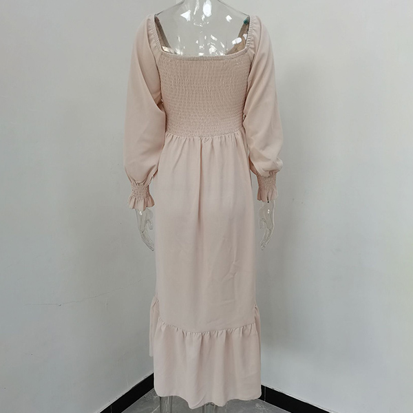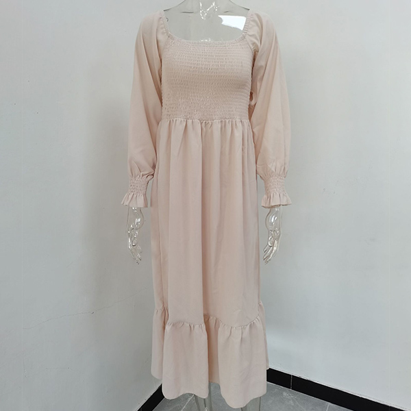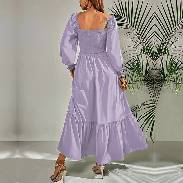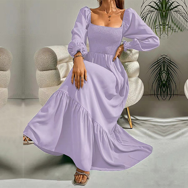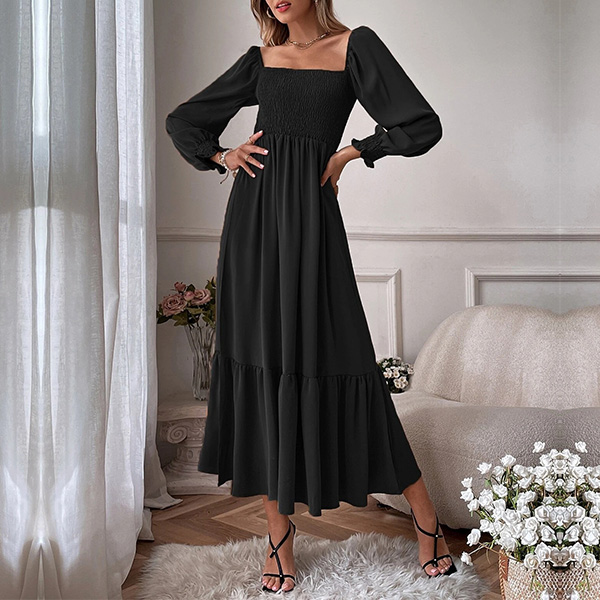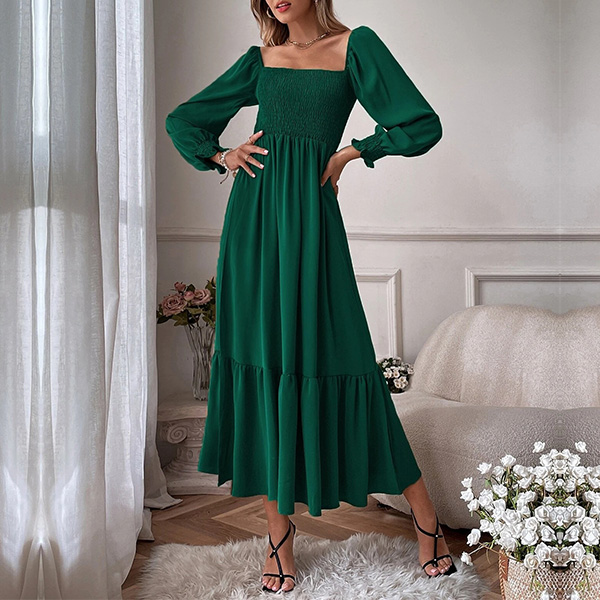 Fashion Solid Color Long Sleeve Square Neck Smocked Long Sleeve Dress
