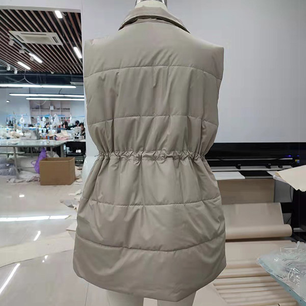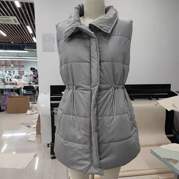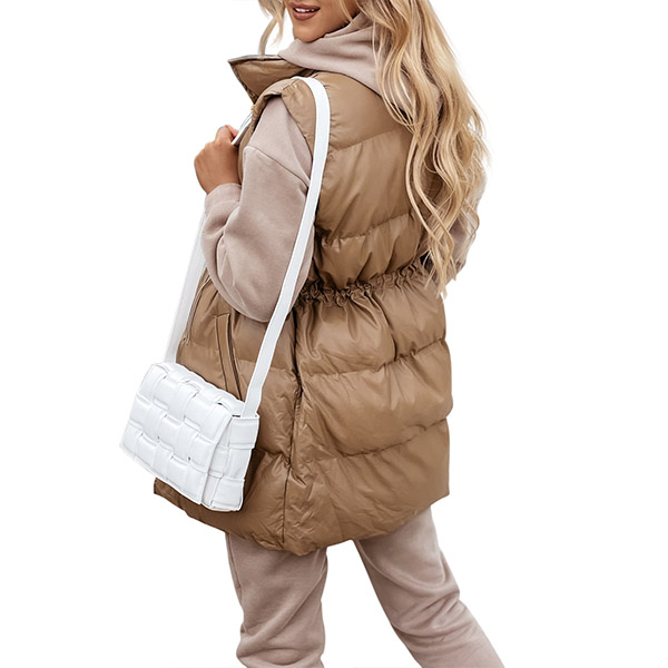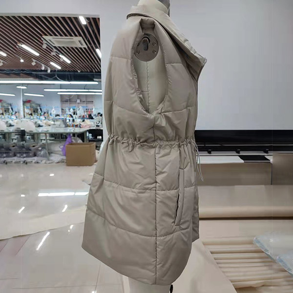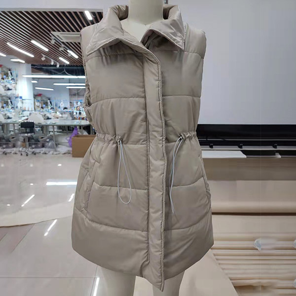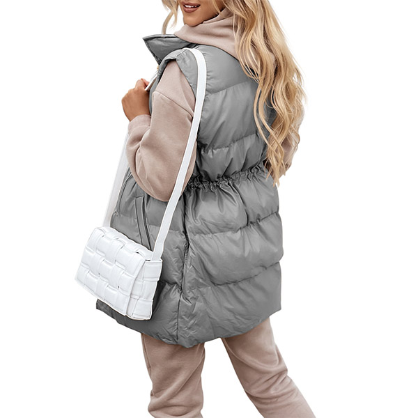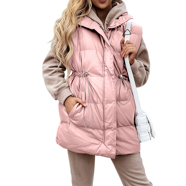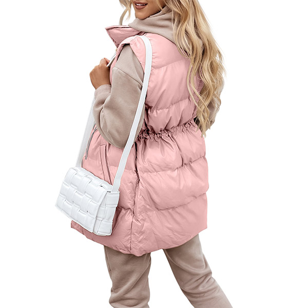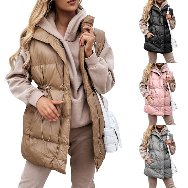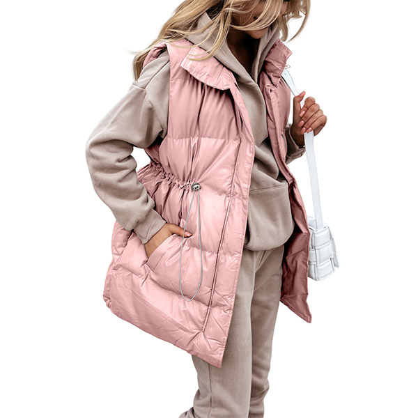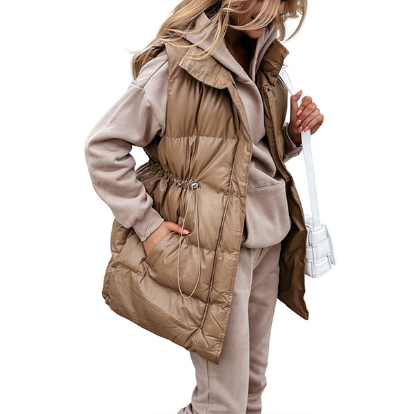Fashion Solid Color Long Sleeve Stand Collar Drawstring Waist Warm Vest