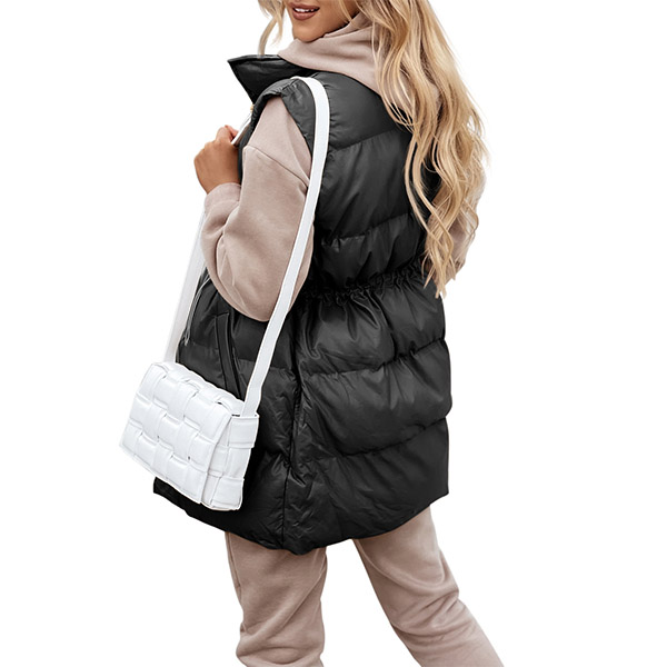 From your autumn days to chilly winter days,this vest can give you an easy transition. Solid color style,finished with sleeveless,stand collar and elastic drawstring waist,this vest not only can keep you warm,but also can be matched with different style outfits such as t-shirts,sweaters,dresses and so on.
