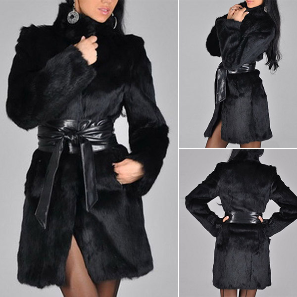 Make your winter wardrobe more complete by adding this faux fur caot. Its high quality faux fur fabric can make this piece look delicate,high-end and luxurious. Comes with a PU leather waist strap,which will enrich the design style as well as boost its entire charm.