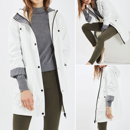 accompanied with long sleeve,stand collar,hooded and a clean silhouette,this coat can tell you what is refined