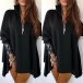 Fashion Solid Color Long Sleeve Stand Collar Irregular Hem Loose Top