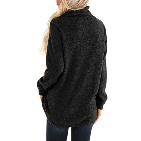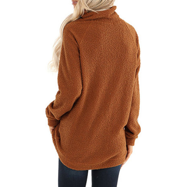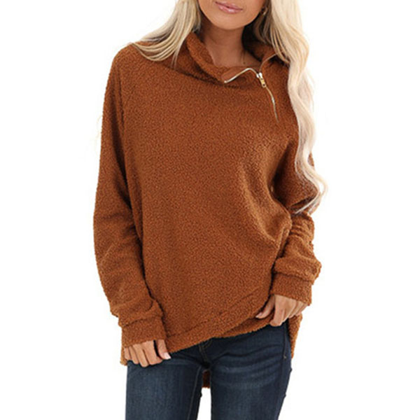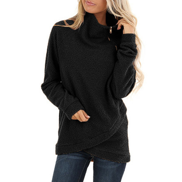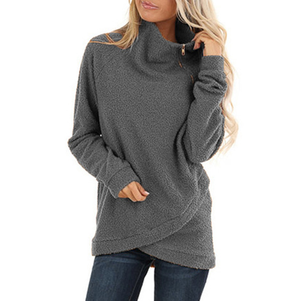 Fashion Solid Color Long Sleeve Stand Collar Irregular Hem Plush Sweatshirt