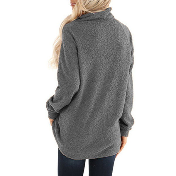 When the weather gets drop,this plush sweatshirt cam be your wise choice. It comes with a solid color,the stand collar and irregular hem design break the simple and classic design style,while its soft and cozy plush fabric can ensure you a warm and comfortable day. You can match with a skinny jeans to finish a fashionable autumn look.