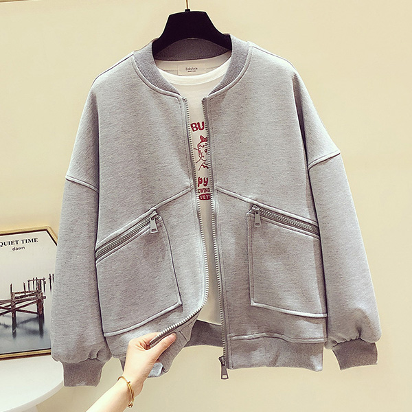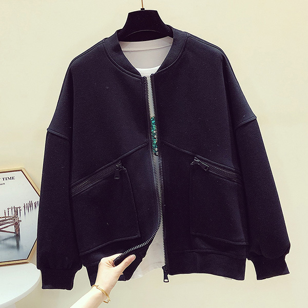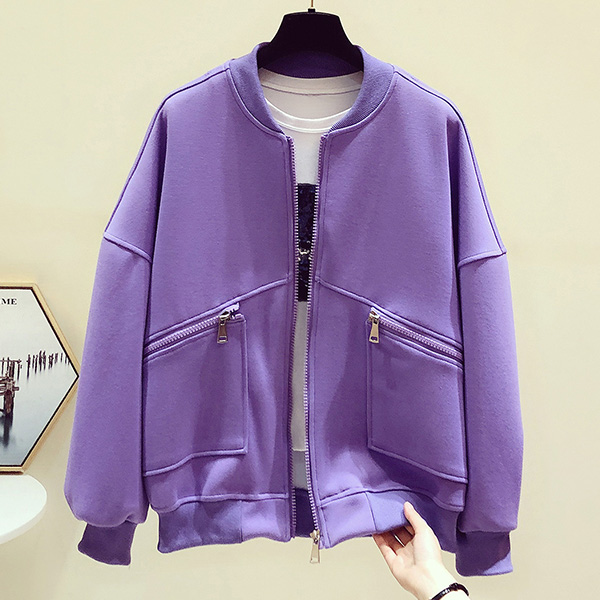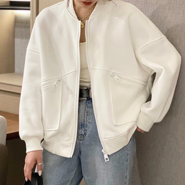 Fashion Solid Color Long Sleeve Stand Collar Jacket
