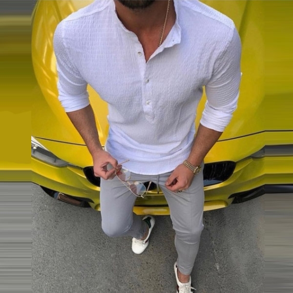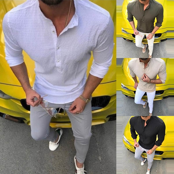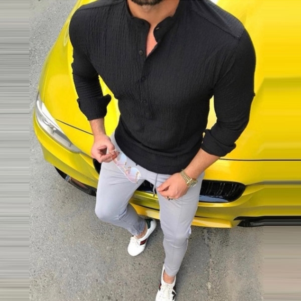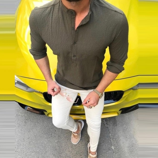 Don't like too formal shirt? Then make your eyes focused on this one! Comes with a solid color,finished with long sleeve,
