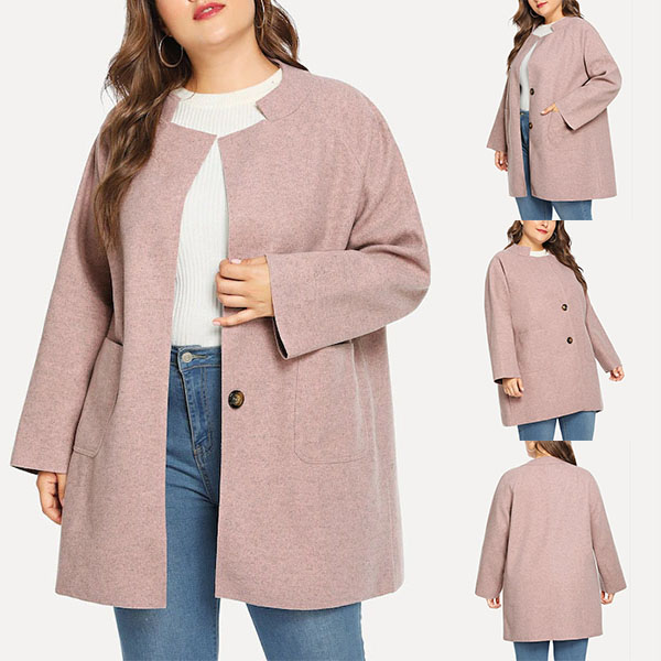This plus-size coat comes with a sweet yet stylish pink tone,finished with long sleeve,stand collar and front-pocket design,this coat not only can keep you warm and comfy,but also can maintain your style and personality. So why not have a look at it?