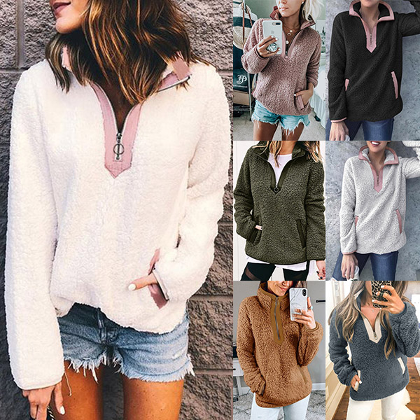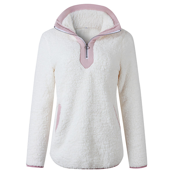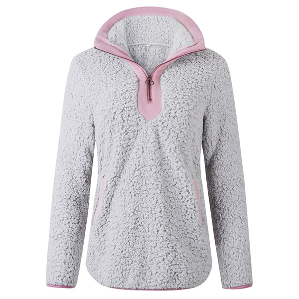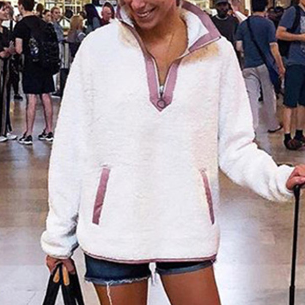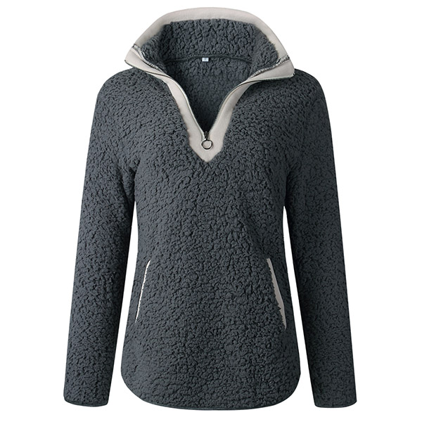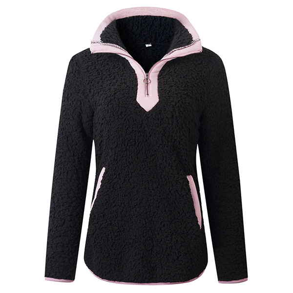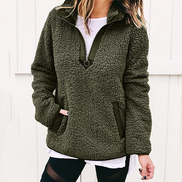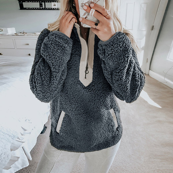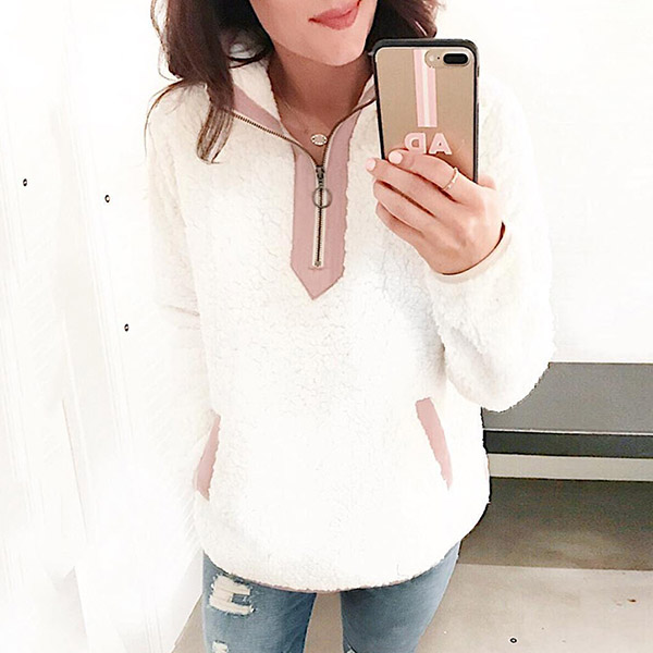 You can stay warm yet stylish in this plush sweatshirt. Finished with long sleeve,stand collar and front-pocket design,this wonderful piece can give you a warm and comfortable day with its soft,cozy plush fabric. Just make your wardrobe have an update by adding this sweatshirt.