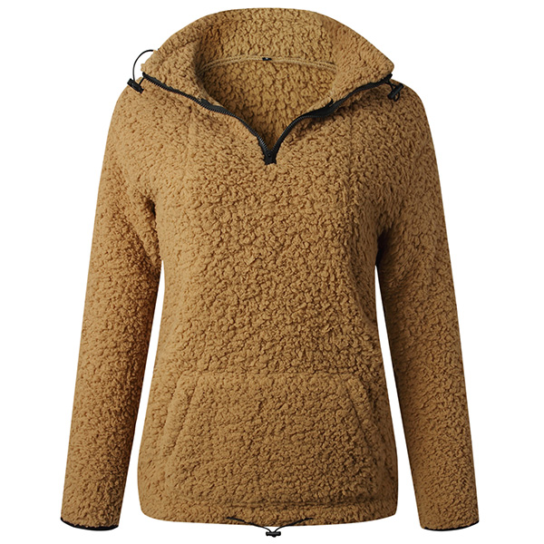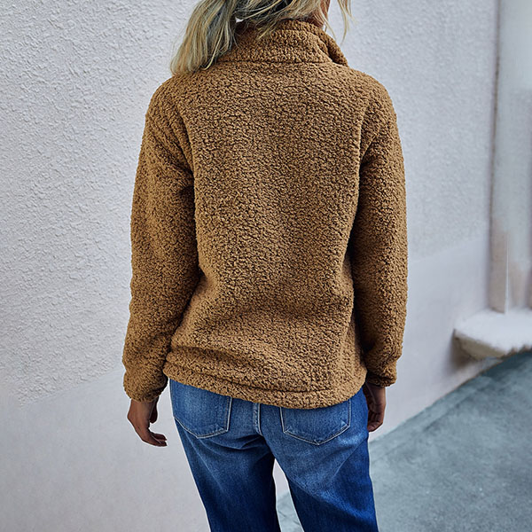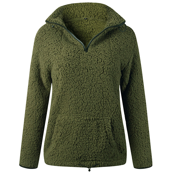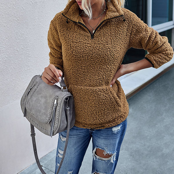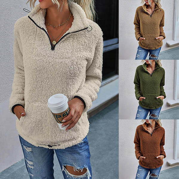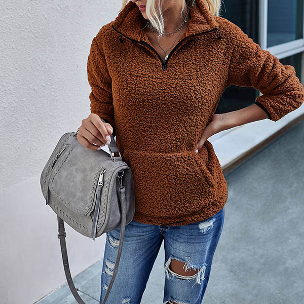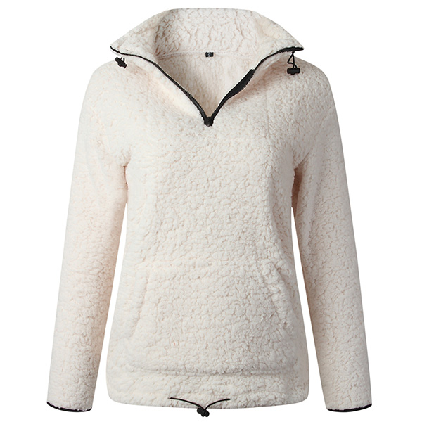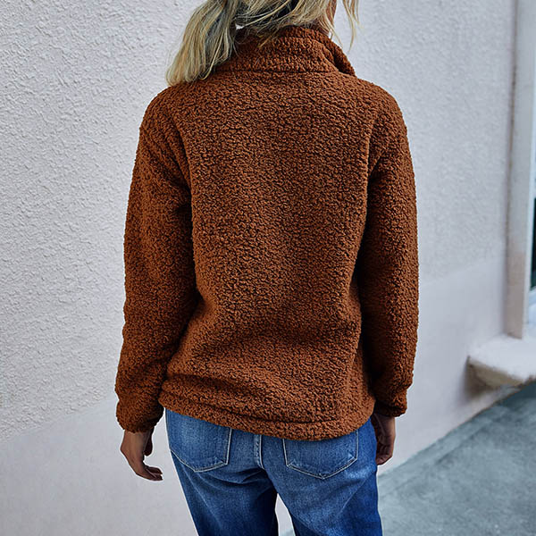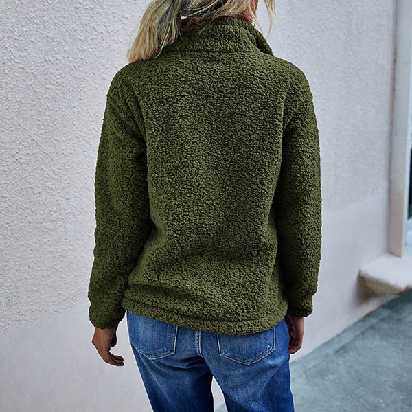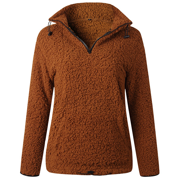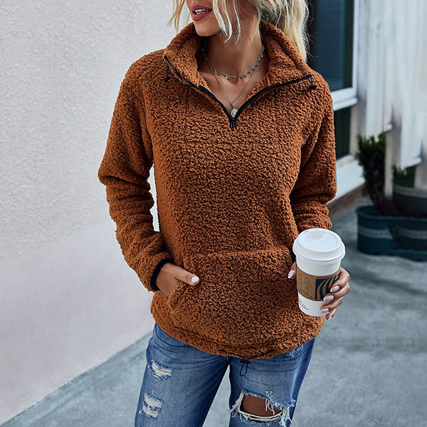 Fashion Solid Color Long Sleeve Stand Collar Plush Sweatshirt