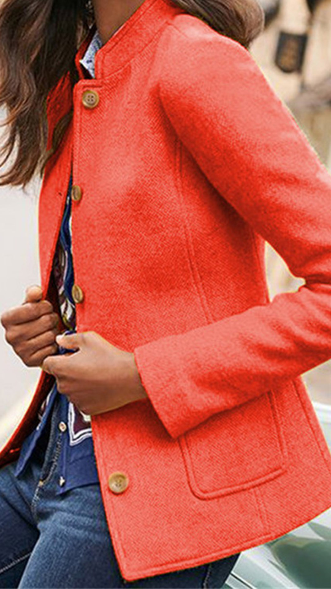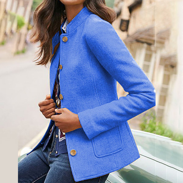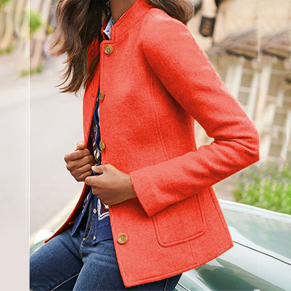 Fashion Solid Color Long Sleeve Stand Collar Single-breasted Slim Fit Duffle Coat