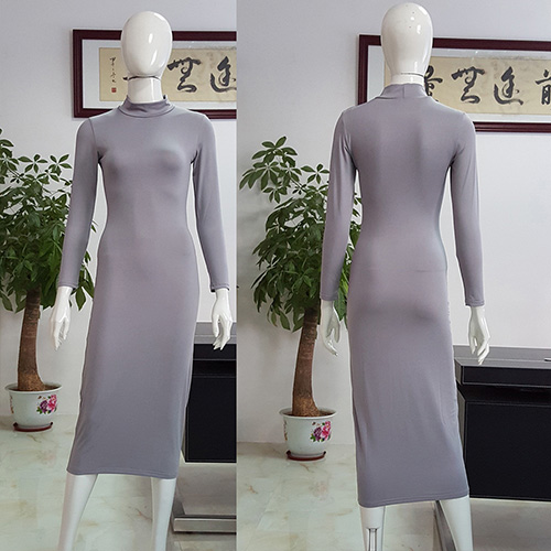 Solid color style,outfitted with long sleeve,stand collar,mid length and a fit silhouette,simple