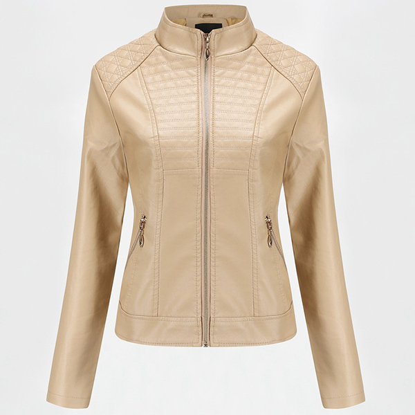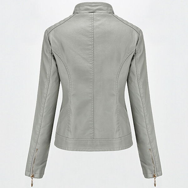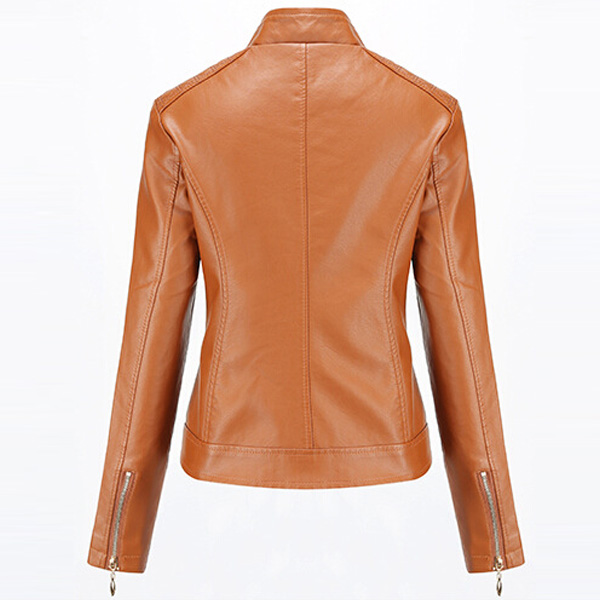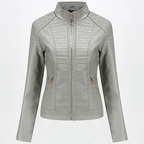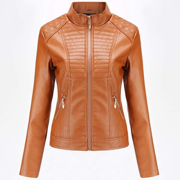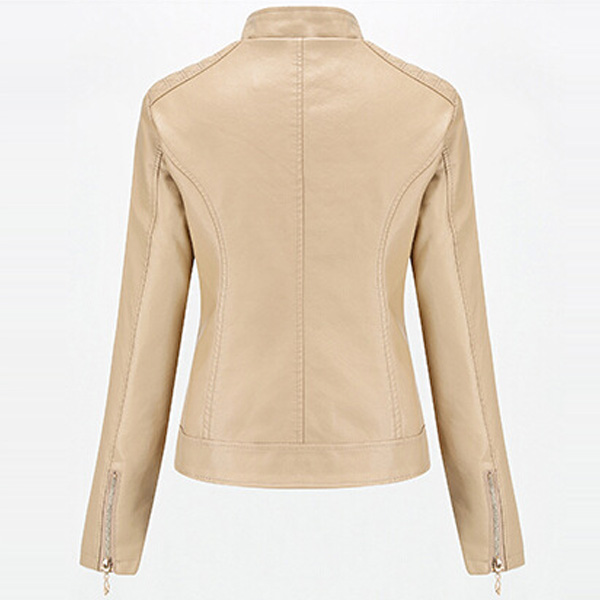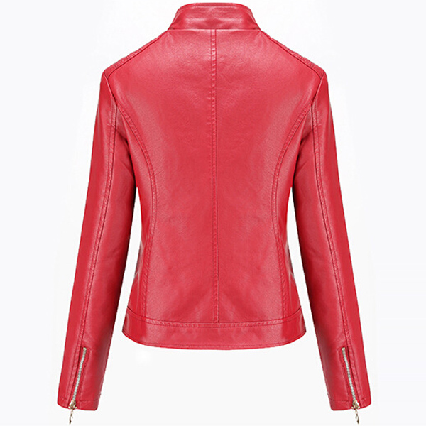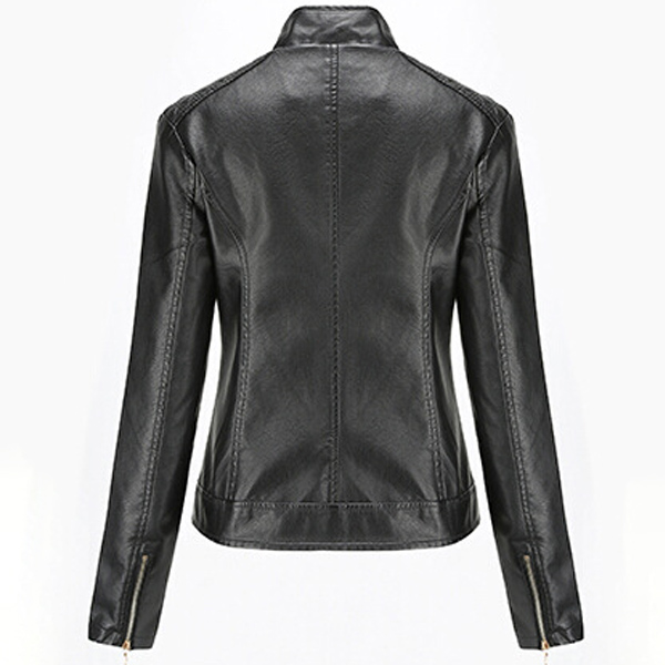 Fashion Solid Color Long Sleeve Stand Collar Slim Fit PU Leather Coat