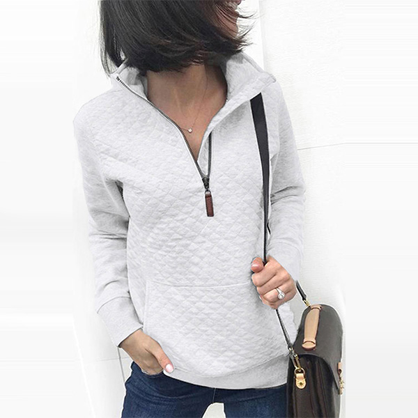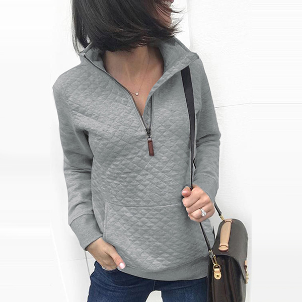 Looking for a sweatshirt which can showcase your slim figure?This piece is the one!The stand collar designed with high quality zipper,finished with front-pocket and long sleeve,which makes it look more special.Add it to your wardrobe and it will not let you down.