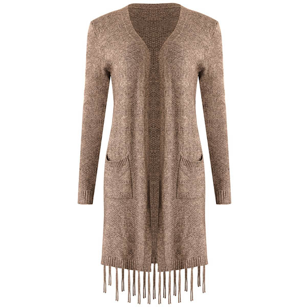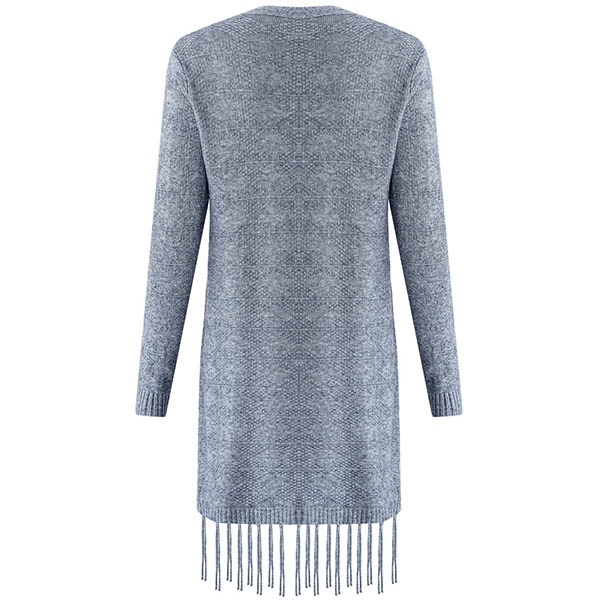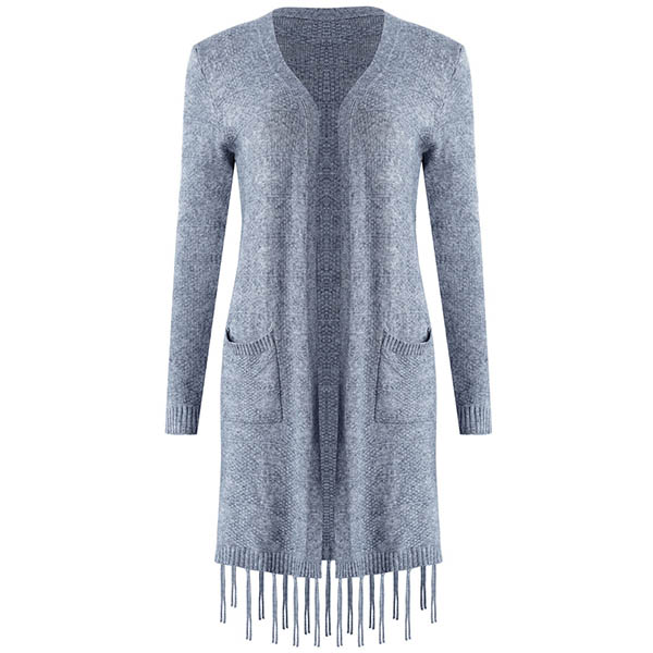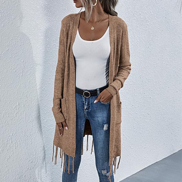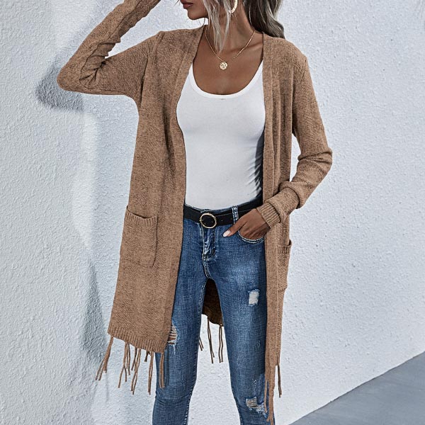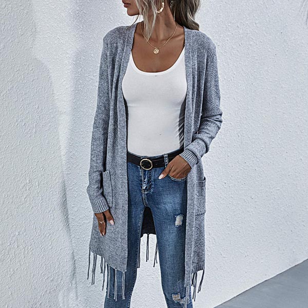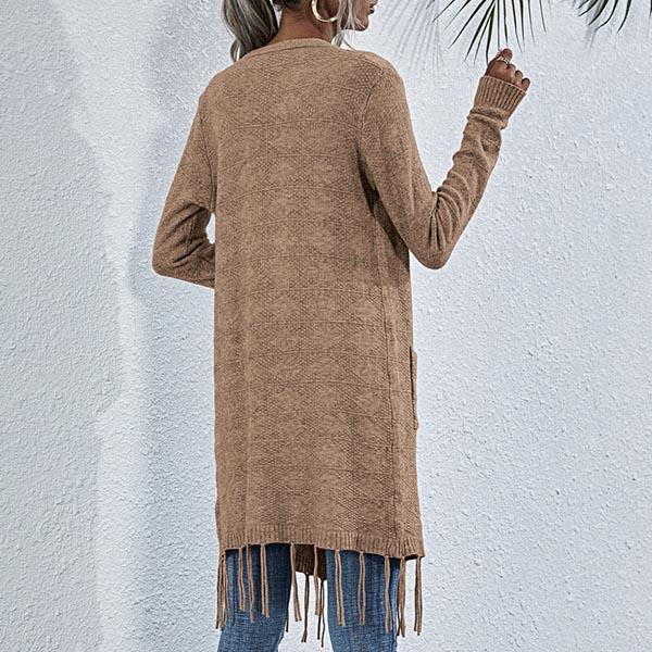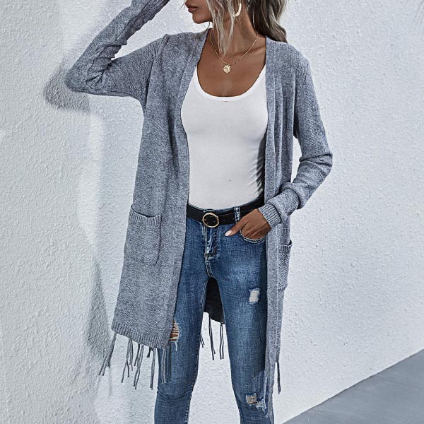 Fashion Solid Color Long Sleeve Tassel Hem Knit Cardigan