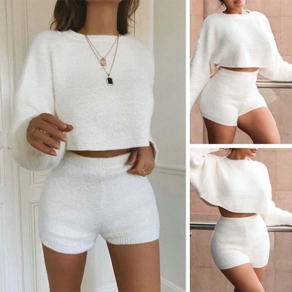 You can have a sexy and charming weekend look when you dress yourself up with this two-piece set. Solid color style,including a long sleeve round neck crop top and a high waist shorts,this two-piece set knows how to showcase your perfect figure while it exudes your femininity. Like this style? Then have a try!