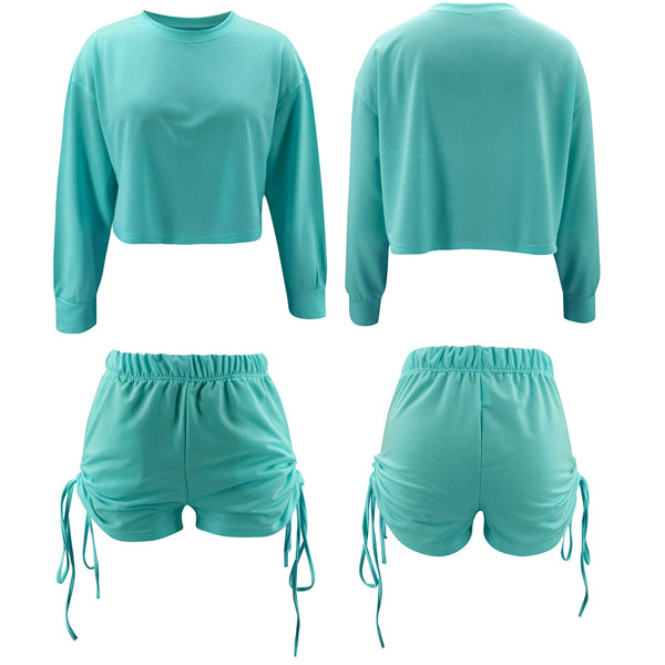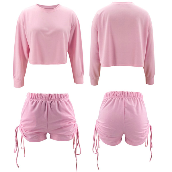 When you don't know how to match,then this two-piece set would be your wise choice. Solid color style,including a long sleeve round neck and a side-drawstring shorts,this two-piece set not only can give you a comfortable day,but also can exude your stylish and flirty side. So why not have a try?