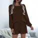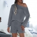 Fashion Solid Color Long Sleeve Top + Shorts Two-piece Set