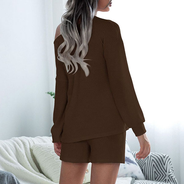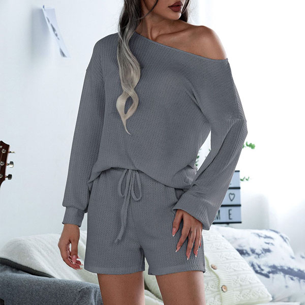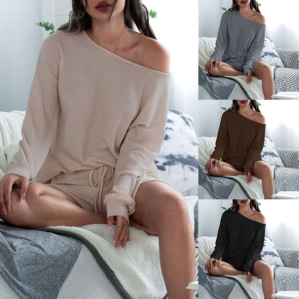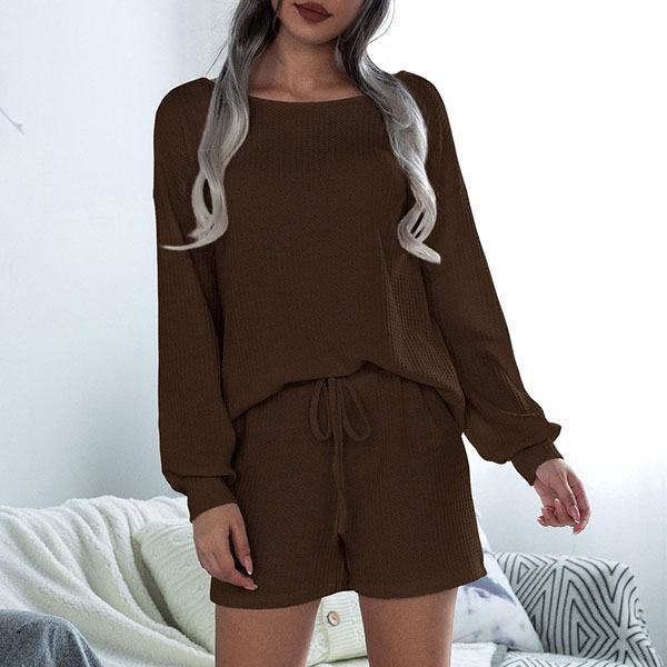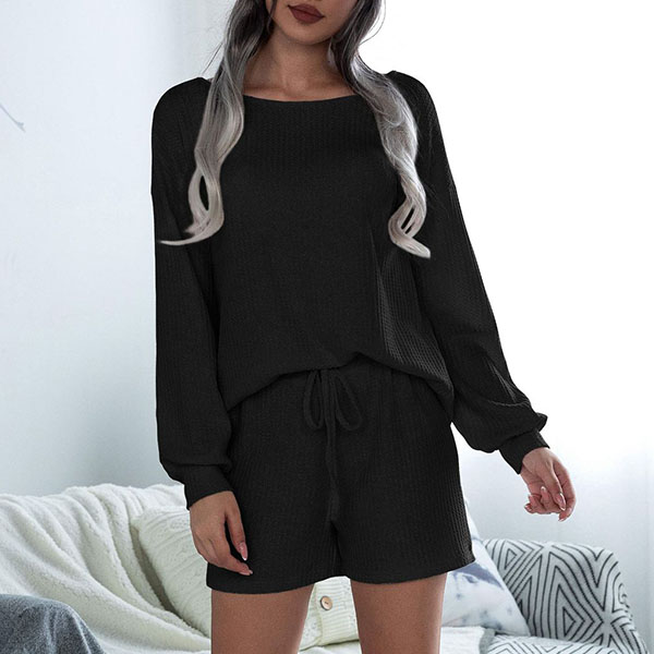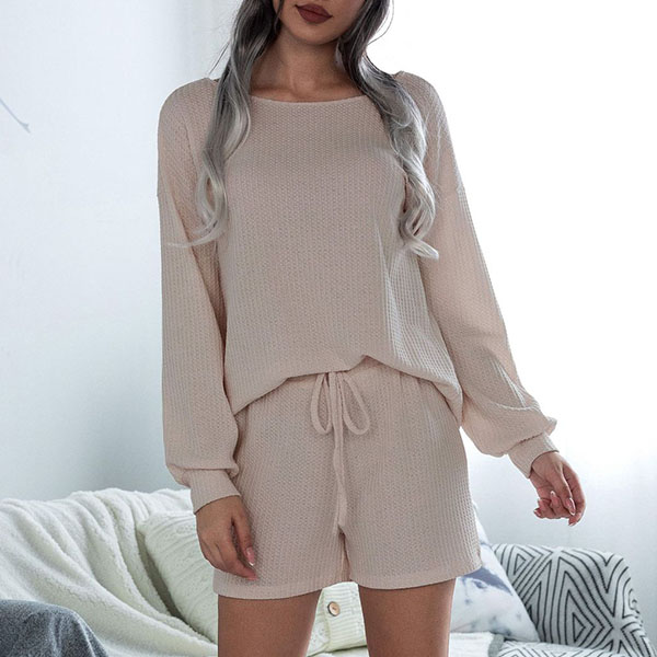 When you have no time to do your daily matching,then this two-piece set would be a perfect solution. Solid color style,including a long sleeve top and a shorts,its soft and breathable fabric can ensure you a comfortable day. Perfect fit for your home time and lazy days.