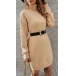 When the days get cold,this sweater dress is worth to be your wardrobe staple. Solid color tone design makes it look simple yet generous,while the turtleneck and knitted fabric can give you a warm and comfortable day. If you wanna enrich your overall dress up,you can consider adding a waistband.