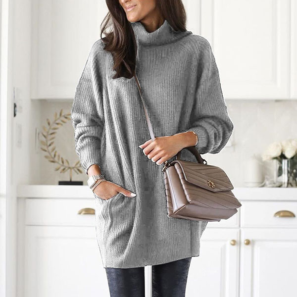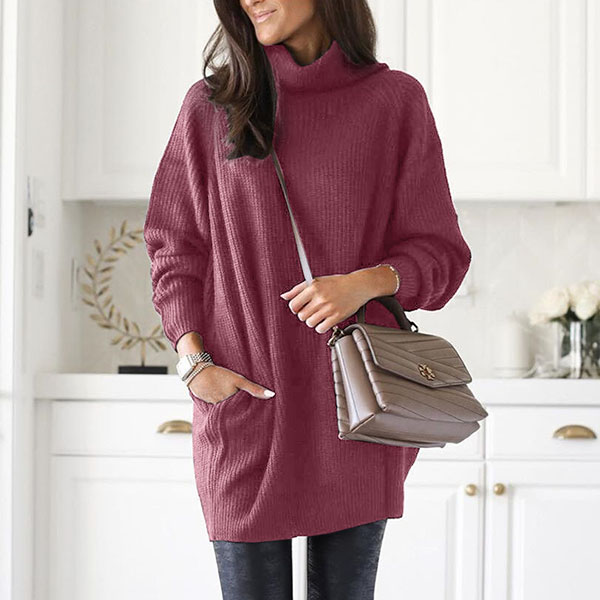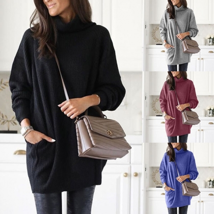 Fashion Solid Color Long Sleeve Turtleneck Knit Top