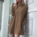 Fashion Solid Color Long Sleeve Turtleneck Loose Dress(Without Belt)