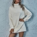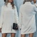 Fashion Solid Color Long Sleeve Turtleneck Plush Dress