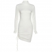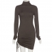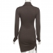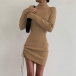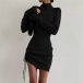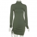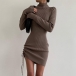 Fashion Solid Color Long Sleeve Turtleneck Side-drawstring Slim Fit Dress