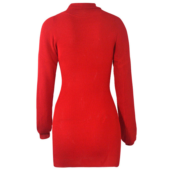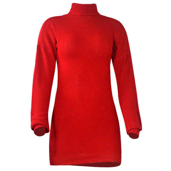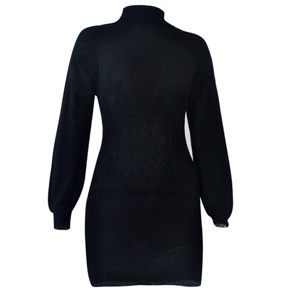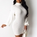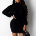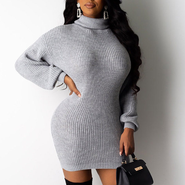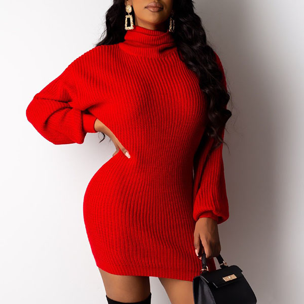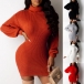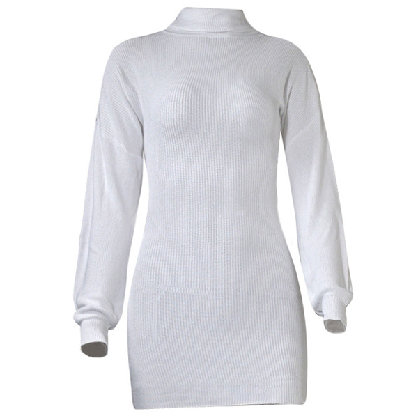 Fashion Solid Color Long Sleeve Turtleneck Slim Fit Knit Dress