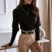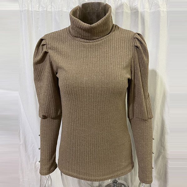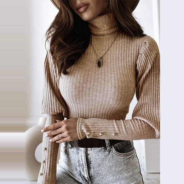 Fashion Solid Color Long Sleeve Turtleneck Slim Fit Knit Top