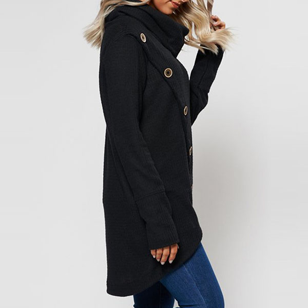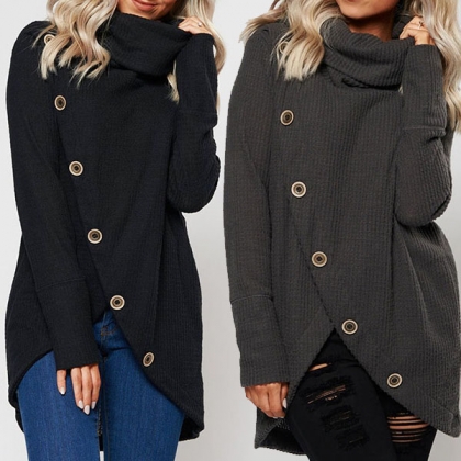 When the days get a little cold,this knit top can strike your mind. Solid color tone design makes it look simple yet stylish,while the slit hem and front-button details will further enhance its charm. Finished with long sleeve and turtleneck design,this piece knows how to give you a warm and comfortable day.