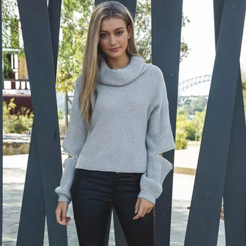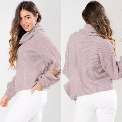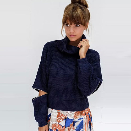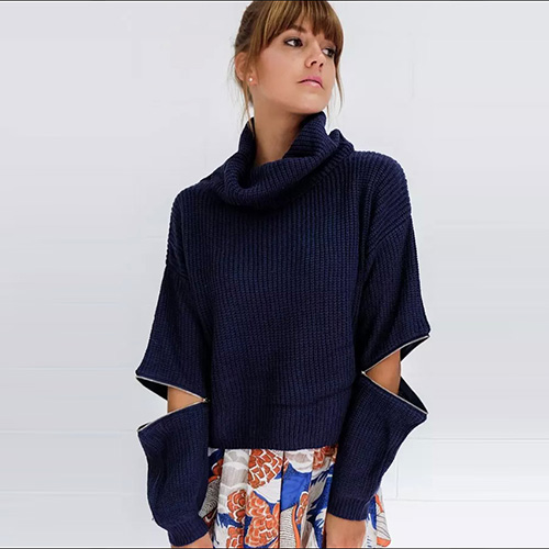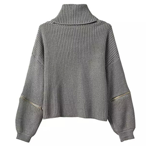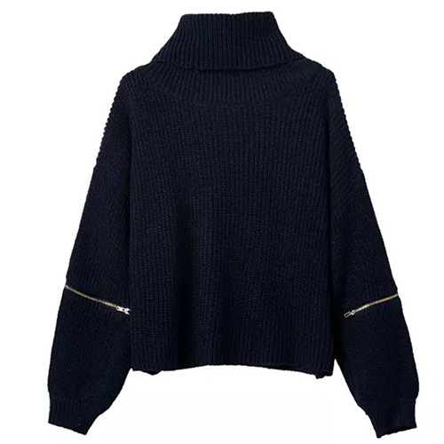 turtleneck design. The best part:sleeve with zipper design. Pairing it with your skirts or jeans. It