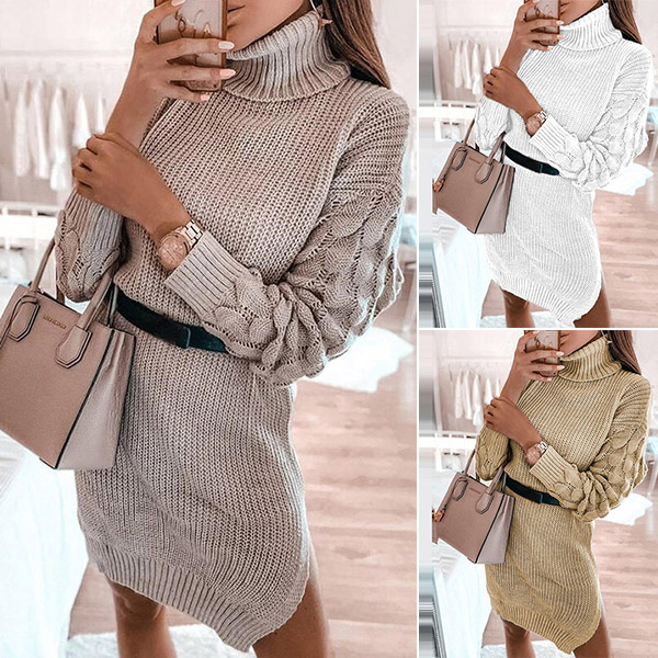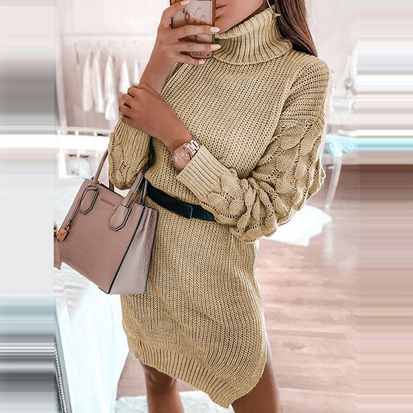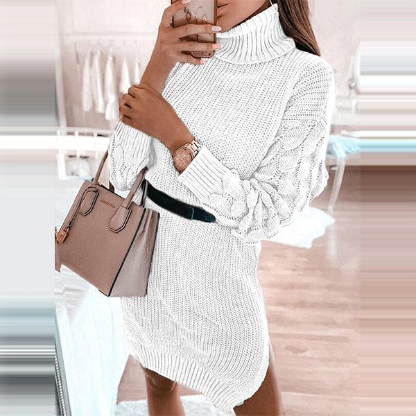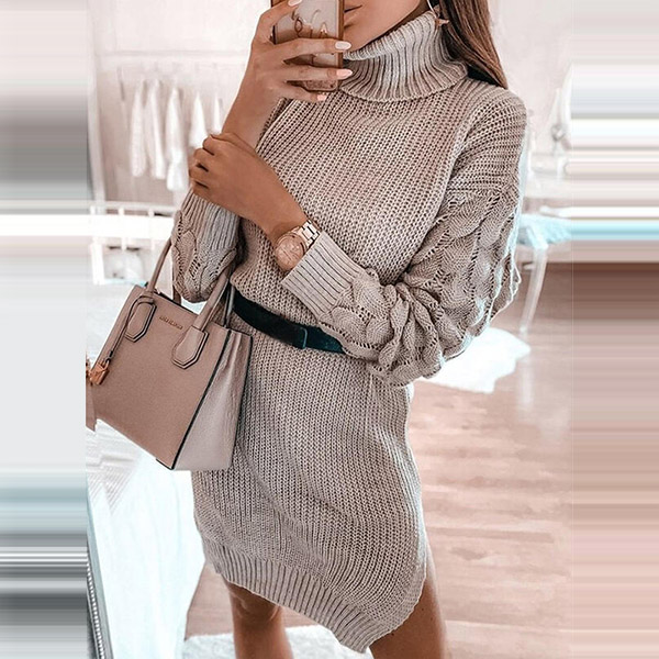 Fashion Solid Color Long Sleeve Turtleneck Sweater Dress