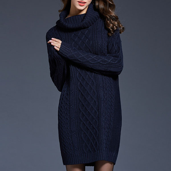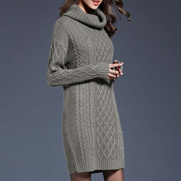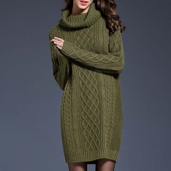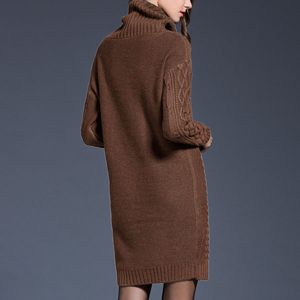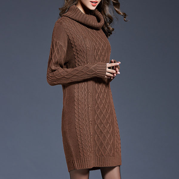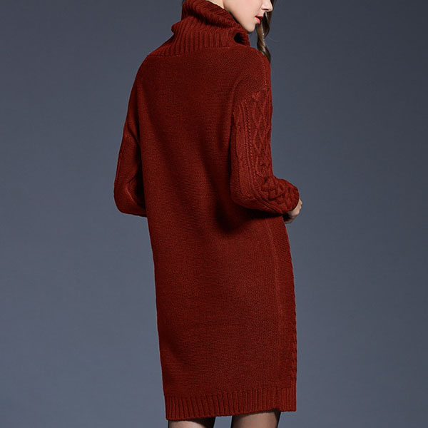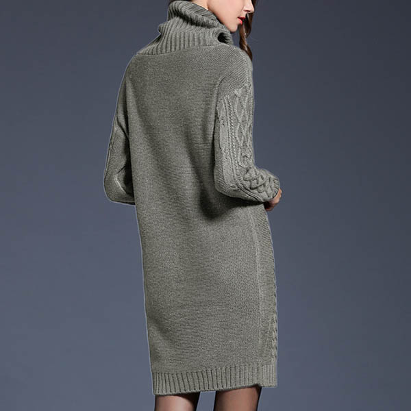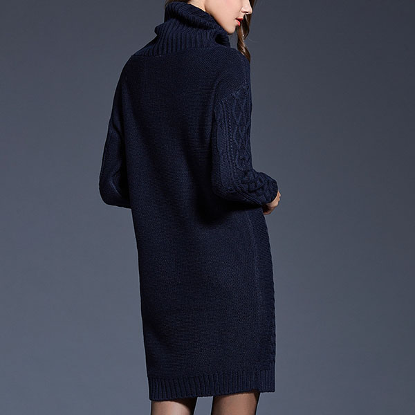 Fashion Solid Color Long Sleeve Turtleneck Sweater Dress