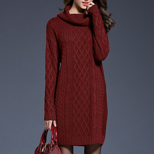 When the days get cold,this cozy yet stylish sweater dress is worth to arouse your attention. Solid color tone design makes it look stylish yet generous. Finished with long sleeve,turtleneck and a fit silhouette,this delicate sweater dress is sure to exude your charm. We thing matching with your over-the-knee boots would make you look charming and beautiful enough!