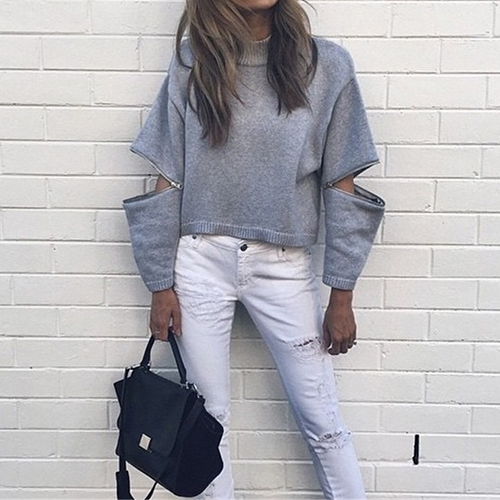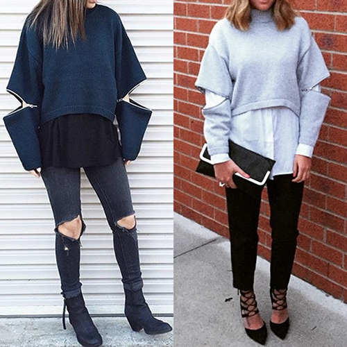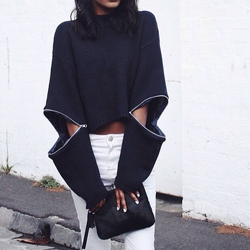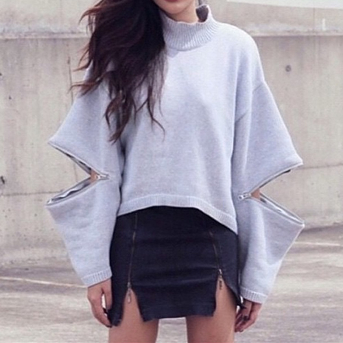 with long sleeve and turtleneck design. The best part:sleeve with zipper design.