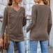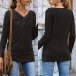 Combines of chic,cozy and stylish vibes,this t-shirt is worth to arouse your attention. Solid color style,its soft and breathable fabric can promise you a comfortable day. What's more,the twsted v-neck design is the highlight,which will make this piece look more attractive. Like it? Then invite this piece to your wardrobe!