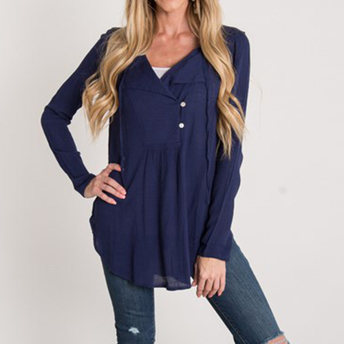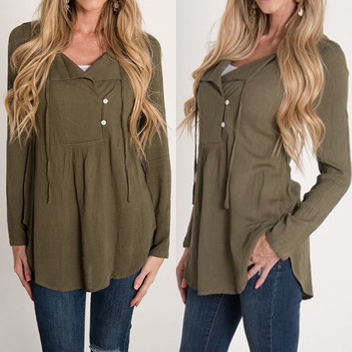 Add a touch of casual,laid-back yet stylish vibe to your wardrobe ensemble with this blouse. Solid color style,